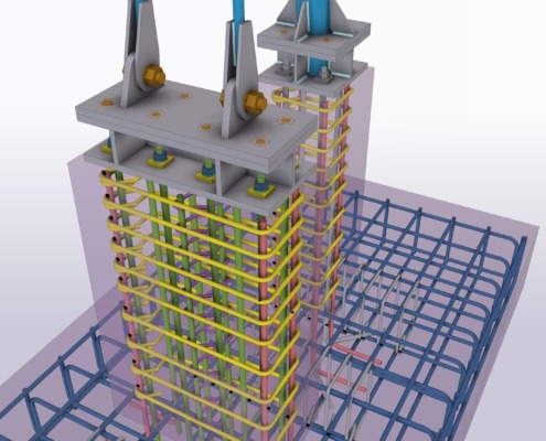 stalowa konstrukcja wsporcza zacieniaczy membranowych wraz z posadowieniem,